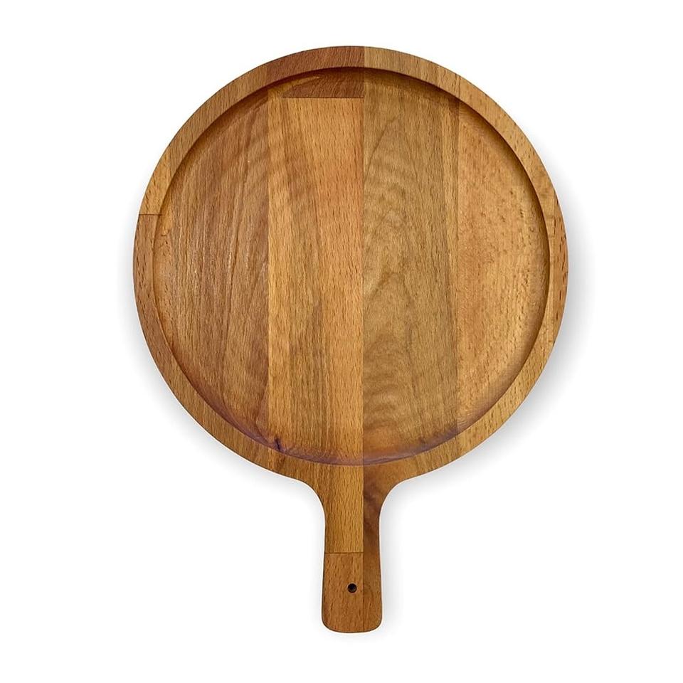 ถาดไม้ใส่พิซซ่าพร้อมที่จับดีไซน์ใหม่ล่าสุดถาดไม้สำหรับเสิร์ฟพิซซ่า