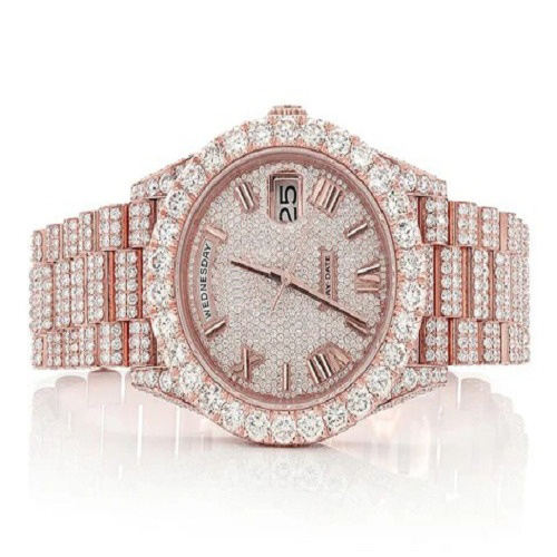 นาฬิกาข้อมือผู้ชายประดับเพชรโมอิสแวววาวสไตล์ฮิปฮอปแก้วสแตนเลส