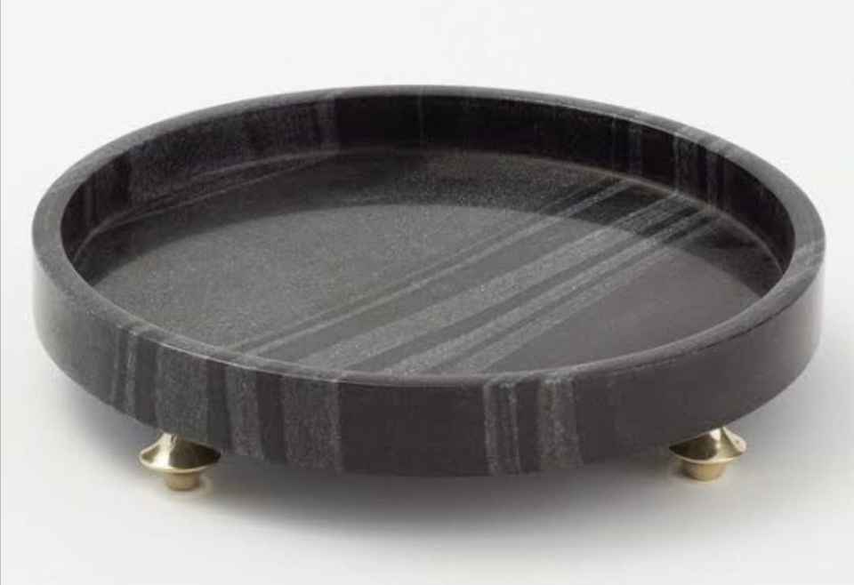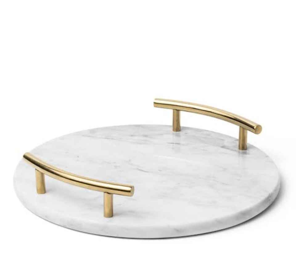 ถาดเสิร์ฟหินอ่อนหรูหราพร้อมที่จับทองเหลืองทนทานดีไซน์ใหม่ล่าสุดฐานแข็งแรงดีไซน์น่าดึงดูด