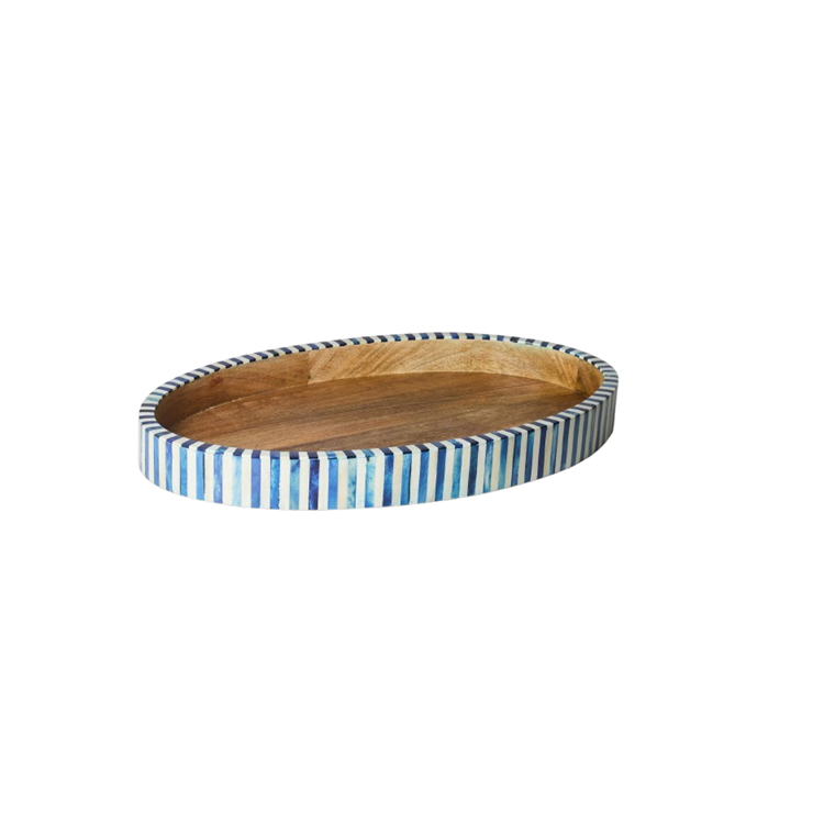 ถาดไม้มะม่วงพร้อมขอบเรซินถาดเสิร์ฟทรงรีดีไซน์พรีเมี่ยม