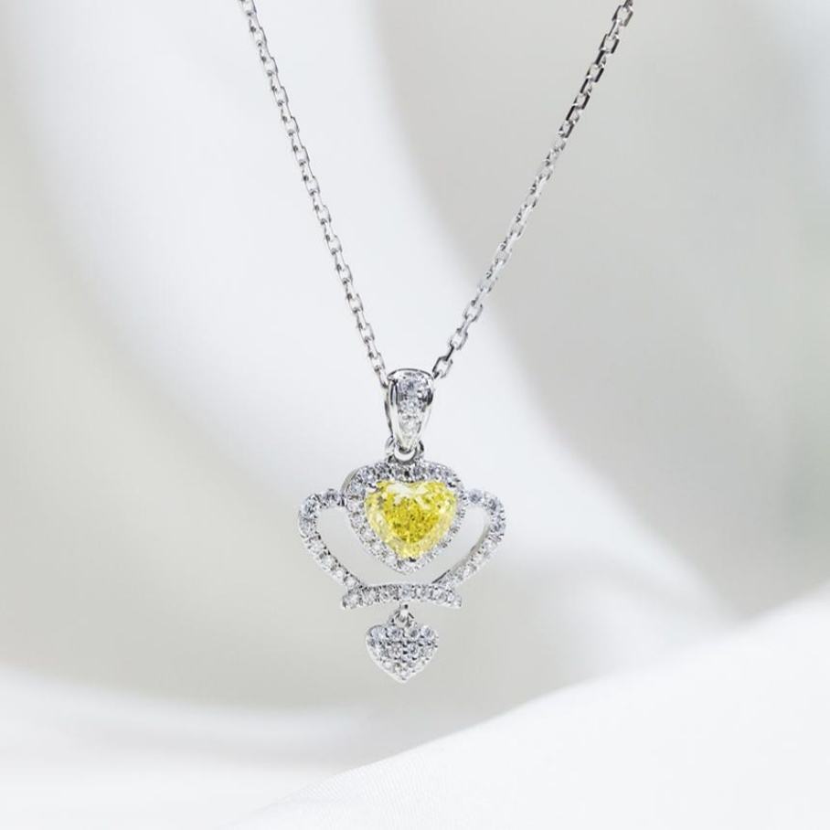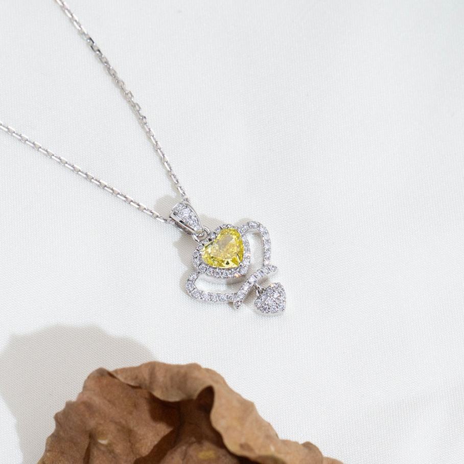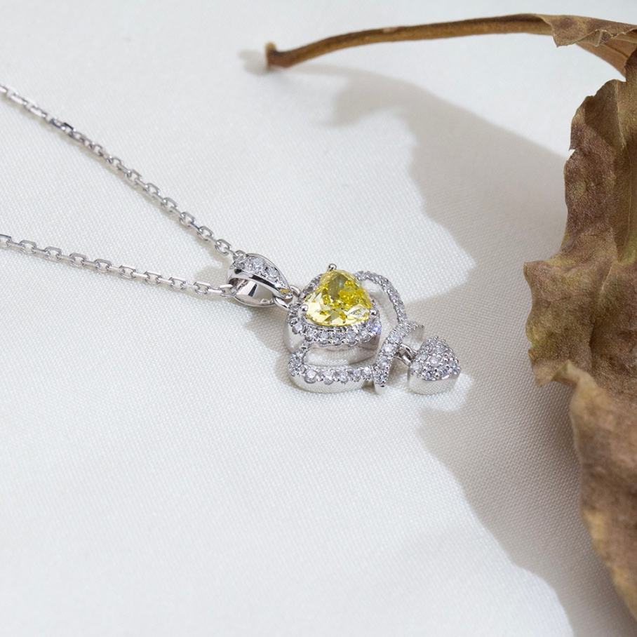 สร้อยคอออกแบบล่าสุด MSN-933 สร้อยคอจี้ทอง 18k รูปหัวใจ ประดับเพชรเหลืองเพาะเลี้ยงในห้องปฏิบัติการ