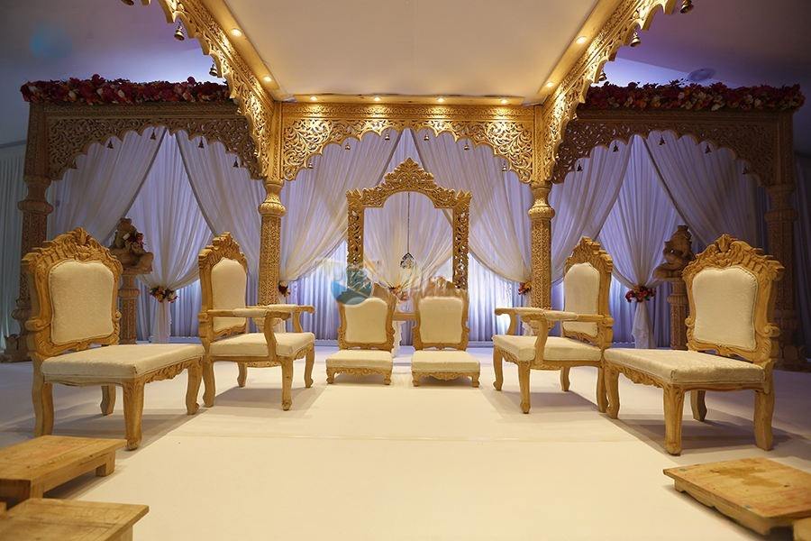 ชุดเก้าอี้พิณสำหรับงานแต่งงานเก้าอี้พิธีแต่งงานทำจากไม้สลักลายฮินดูดีไซน์ล่าสุด