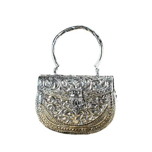กระเป๋าคลัทช์โลหะทองเหลืองโบราณสำหรับผู้หญิงกรอบโลหะสำหรับเจ้าสาวทำด้วยมืองานหัตถกรรม