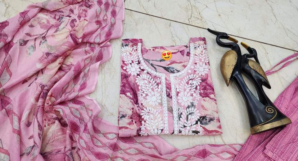 เสื้อปักลายดิจิทัลผ้าฝ้ายพร้อมกางเกงคอวีและ Dupatta