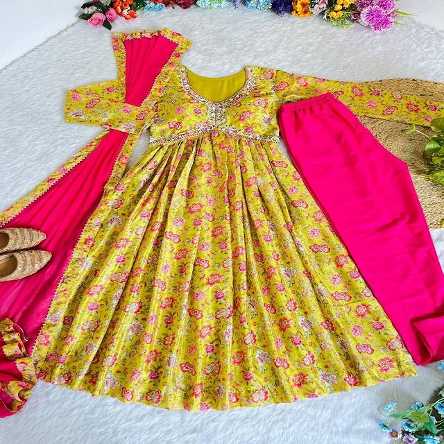 ชุด anarkali kurti งานปักผ้าไหม Chinon ออกแบบล่าสุดโดย fabzone