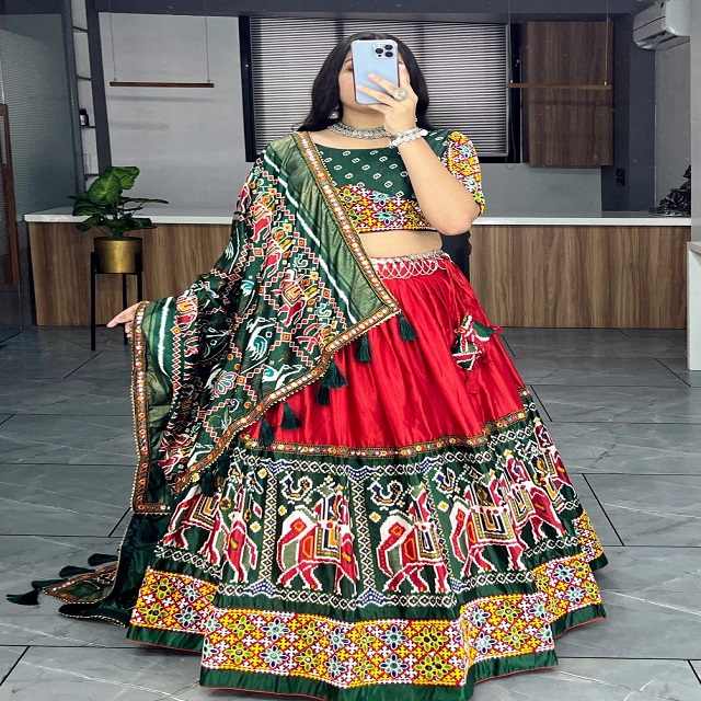 กระจกพิมพ์ลาย dola Silk patola นักออกแบบล่าสุด lehenga choli fabzone