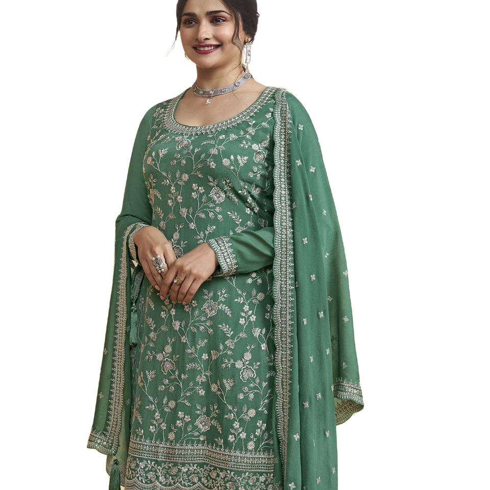 นักออกแบบล่าสุดการลําดับการเย็บปักถักร้อยเทียม Georgette ทํางานชุด Sharara โดย Fab Zone