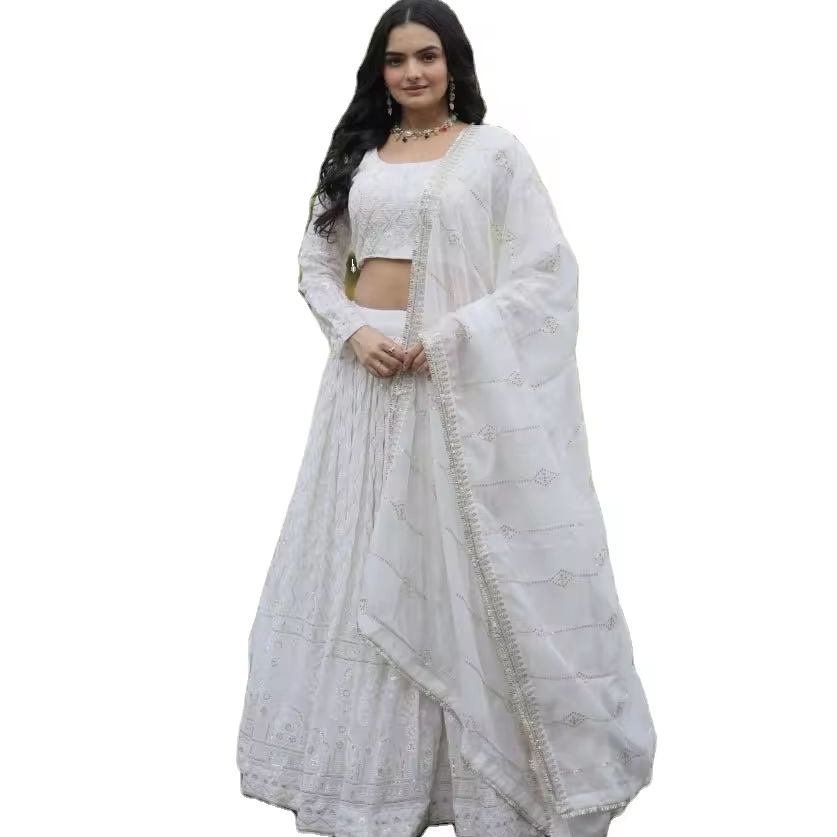 นักออกแบบล่าสุดการลําดับการเย็บปักถักร้อยเทียม Georgette ทํางานเลฮงะโชลีโดย Fab Zone