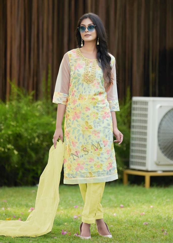 นักออกแบบล่าสุดFaux Georgetteเย็บปักถักร้อยลําดับงานมือKurtiชุดโดยFab Zone