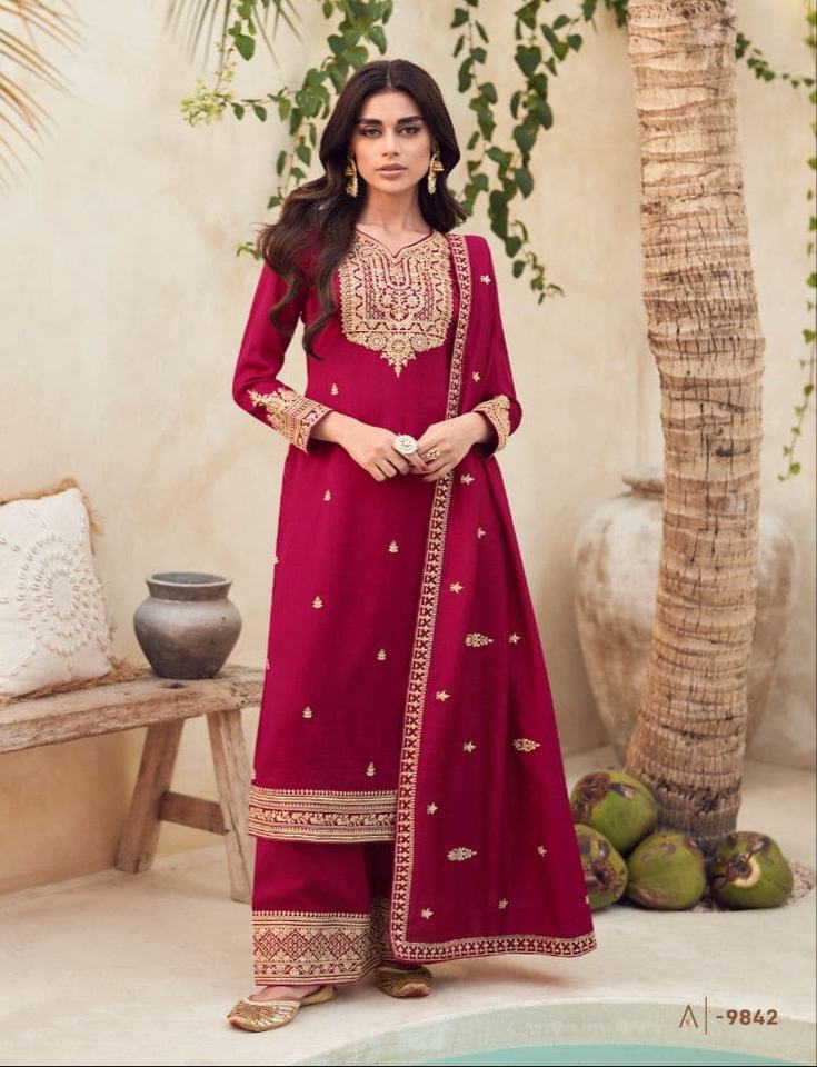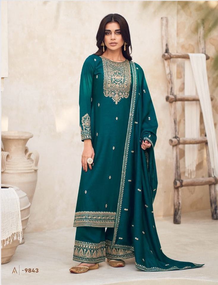 นักออกแบบล่าสุดการลําดับการเย็บปักถักร้อยเทียม Georgette ทํางานชุด Palazzo โดย Fab Zone