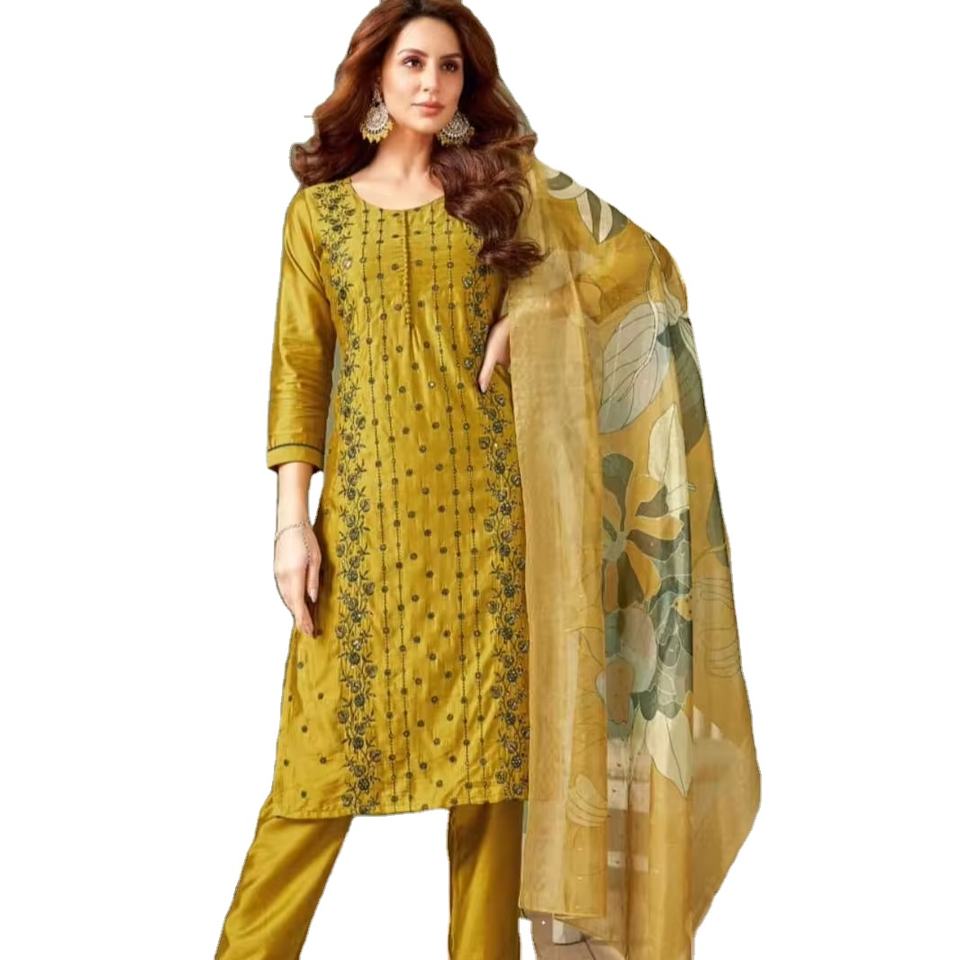 นักออกแบบล่าสุดการลําดับงานเย็บปักถักร้อยผ้าไหมเทียม Georgette ทํางาน Kurti ตั้งโดย Fab Zone