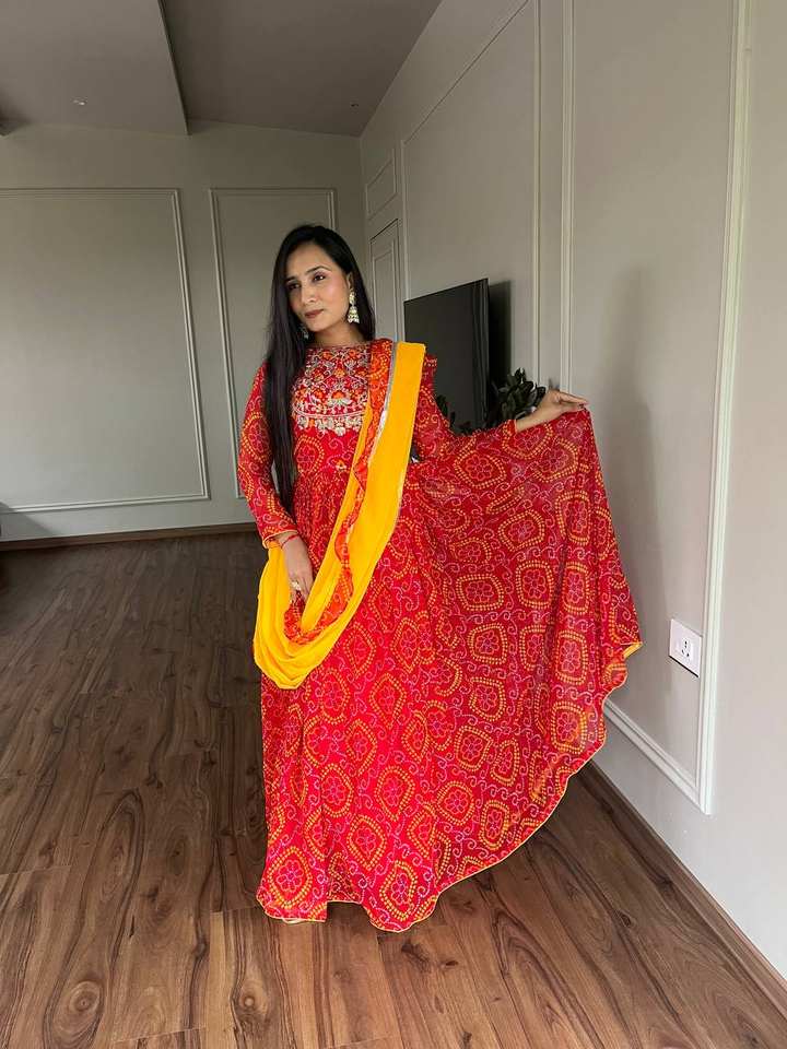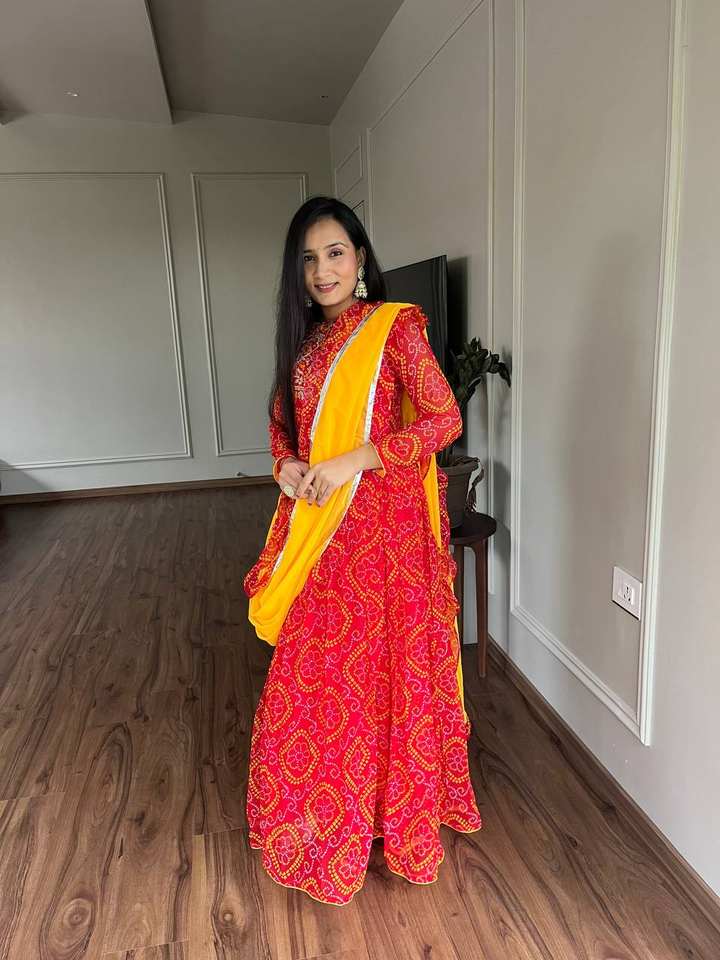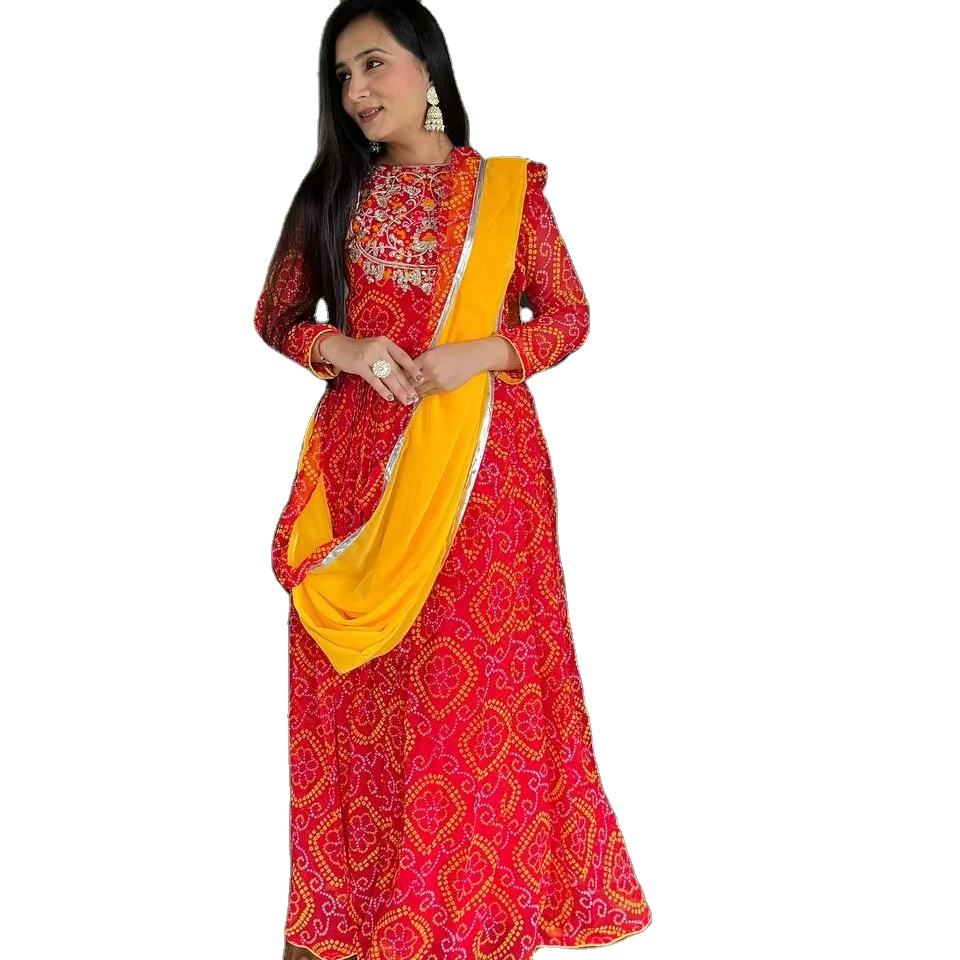 ชุดผ้า Anarkali พิมพ์ลายผ้าทอลายผ้า Georgette bandhej ออกแบบล่าสุด