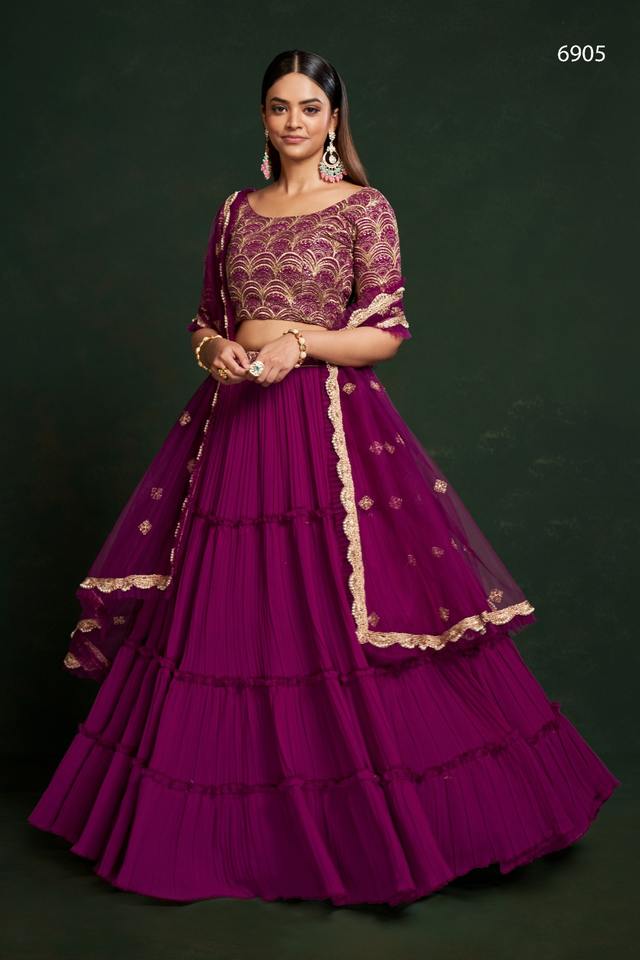 Georgette lehenga choli ออกแบบล่าสุดโดย Fab Zone อินเดียและปากีสถานเสื้อผ้าปักลำดับงาน