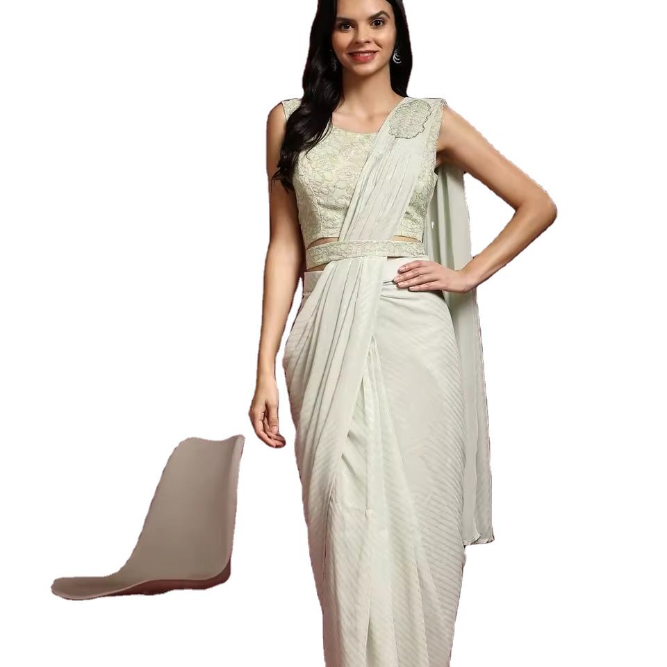 งานเย็บปักถักร้อยผ้าไหม Georgette ของนักออกแบบล่าสุดพร้อมสวมผ้าสารีโดย Fab Zone