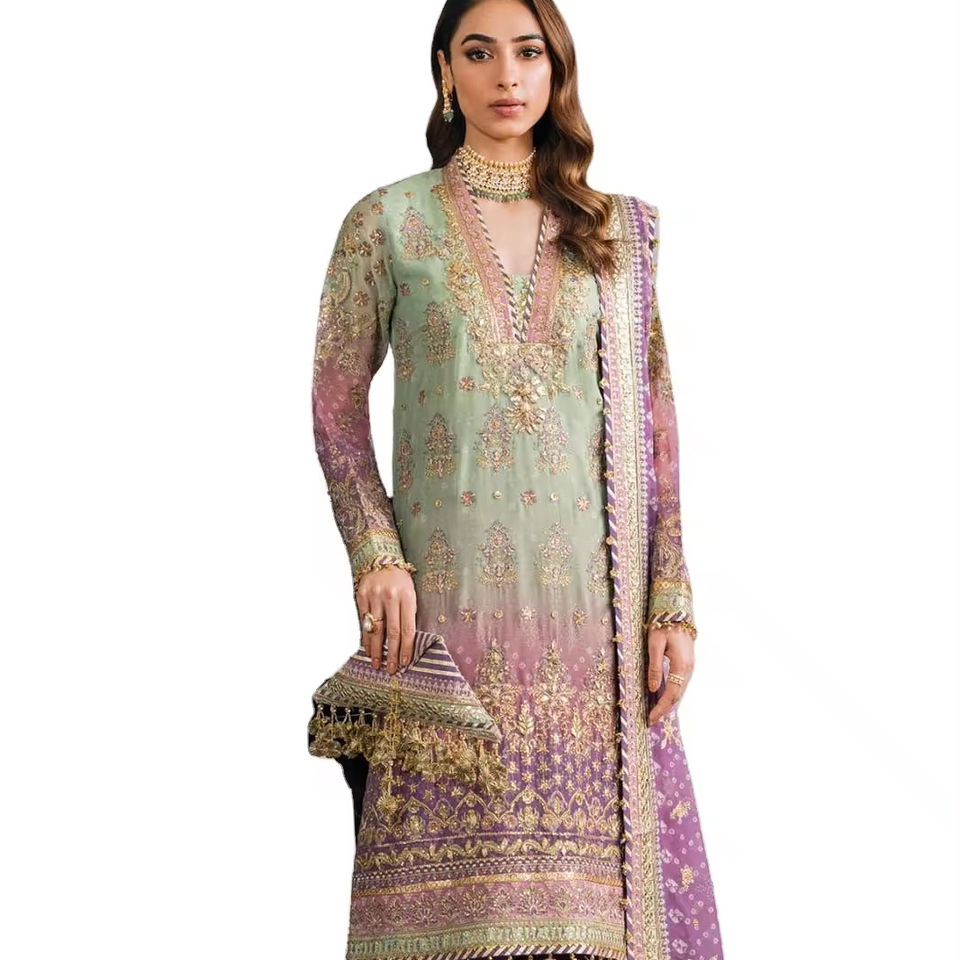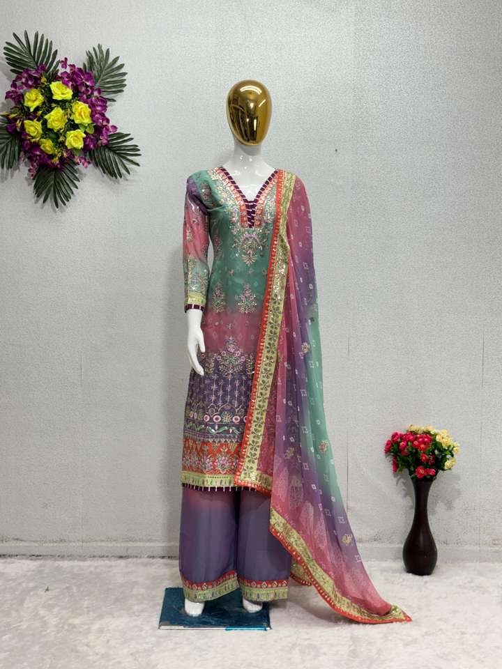 นักออกแบบล่าสุดลําดับงานเย็บปักถักร้อย Georgette เทียมเทียมหนักทํางานชุด Plazzo โดย Fab Zone