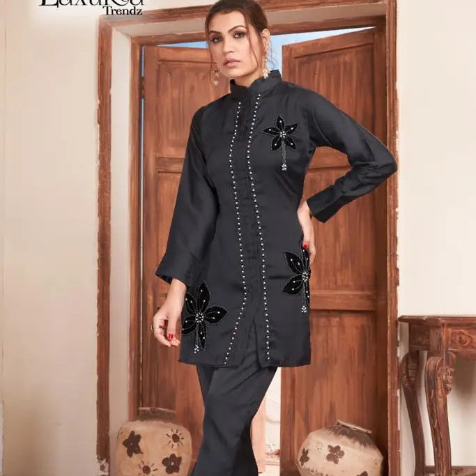 ชุดเดรสสไตล์ปากีสถาน ผ้าจอร์เจตต์กำมะหยี่เนื้อหนา ดีไซน์ล่าสุด พร้อมเชือกตกแต่ง สำหรับใส่ลำลอง แบบซารี ซัลวาร์ เลเฮนกา โชลี จาก FABZONE