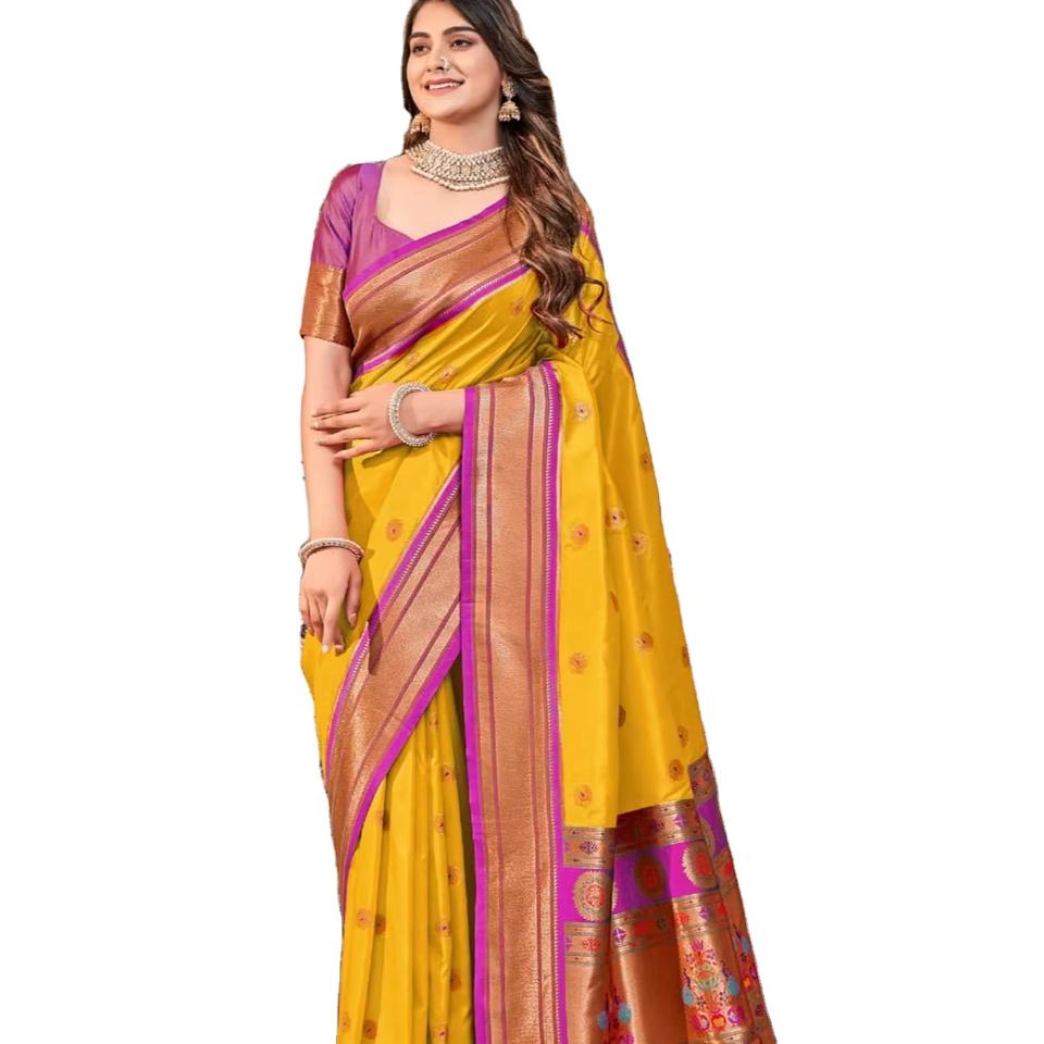 ส่าหรีทอผ้าขอบผ้าไหมส่าหรีสำหรับผู้ใหญ่ดีไซน์ล่าสุด