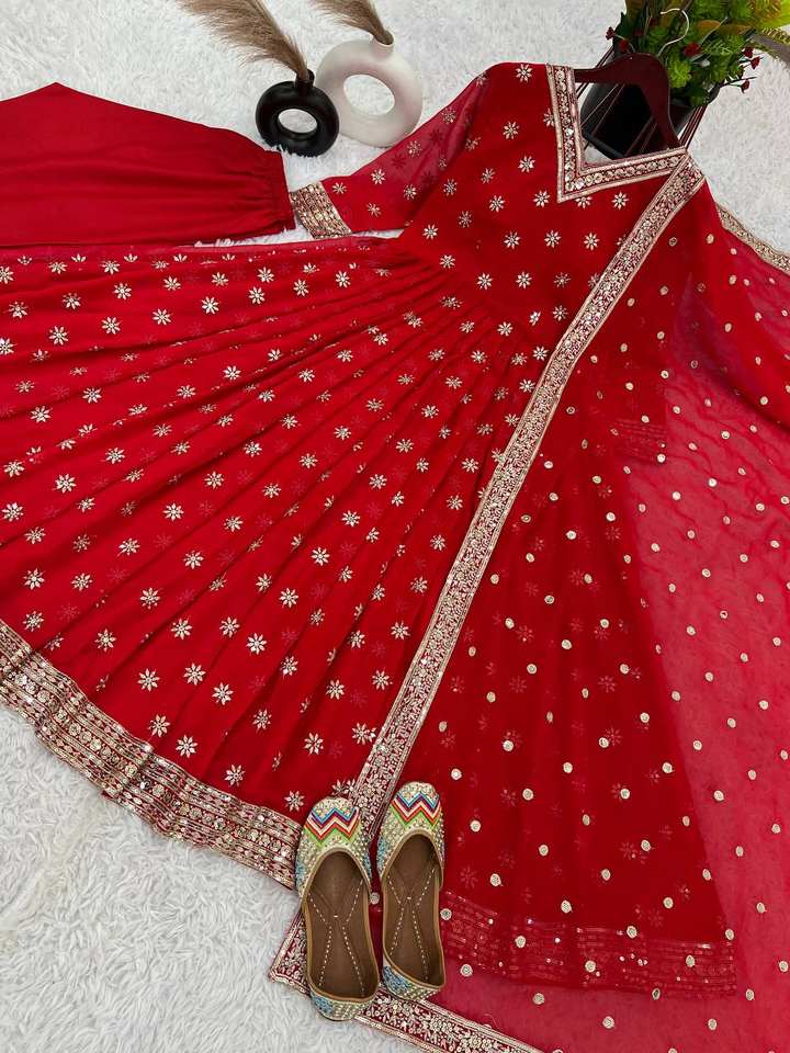 ชุดเดรส Anarkali งานปักลายนูนประดับเลื่อม ผ้าจอร์เจียต์เทียมเนื้อหนา คุณภาพสูง ดีไซน์ล่าสุด สำหรับงานแต่งงาน โดย FabZone