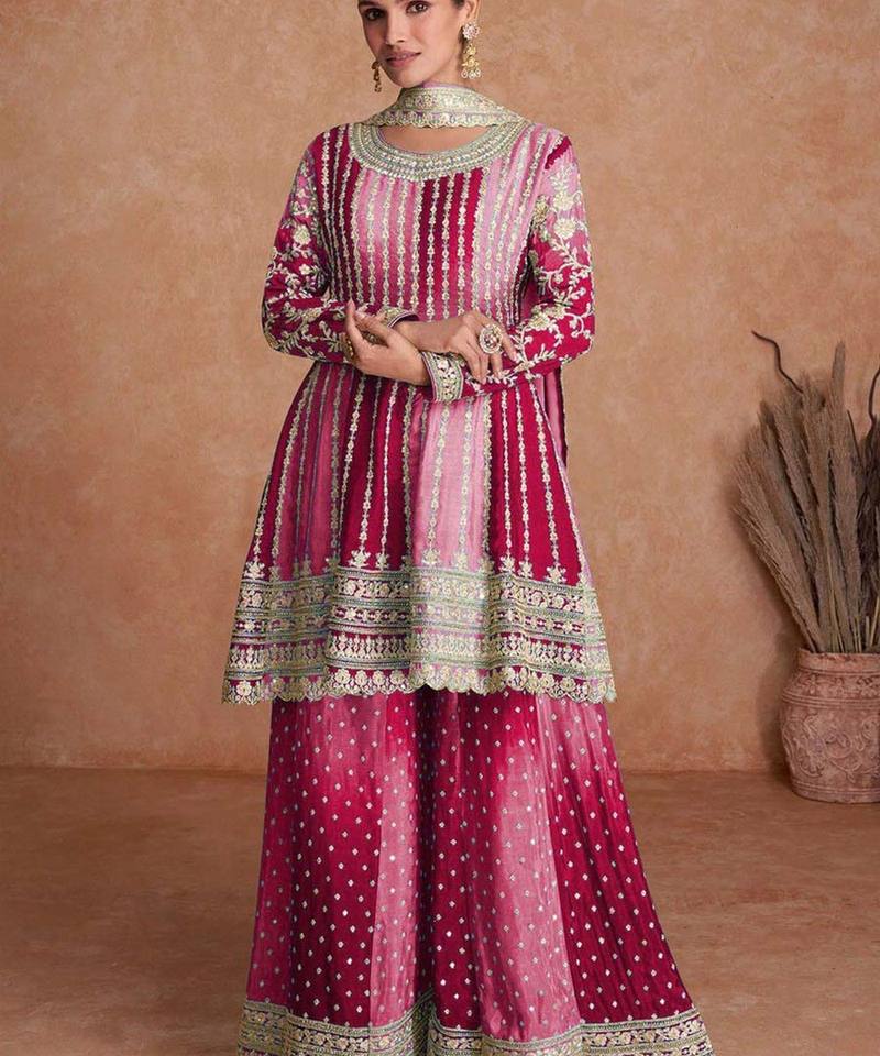 ชาราสำหรับผู้หญิงอินเดียและปากีสถานดูพื้นเมืองสีสวยดีไซน์ใหม่ล่าสุด