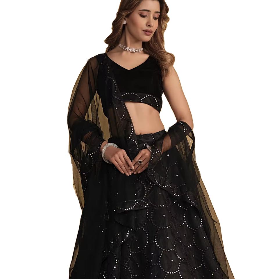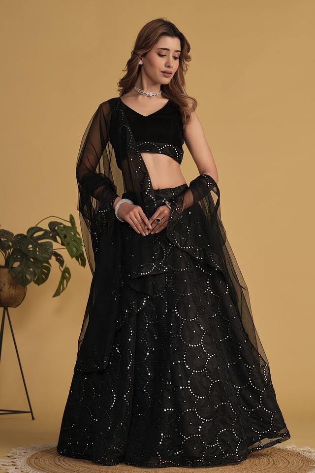 นักออกแบบล่าสุด Organza ด้ายสุทธิลําดับงาน Lehenga Choli โดย Fab Zone