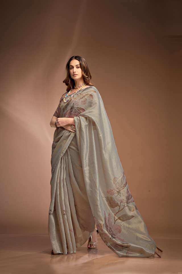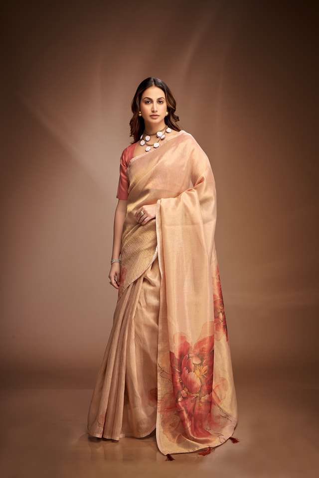 ชื่อผลิตภัณฑ์:เสื้อส่าหรีทิชชูบดแท้ฐาน zari ล่าสุด