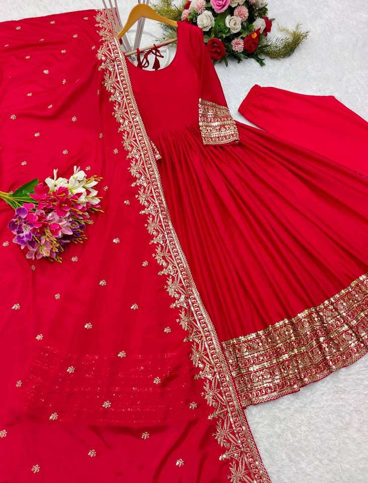 ชุดคลุม anarkali สำหรับงานปักผ้าไหม Chinon แท้ออกแบบล่าสุด