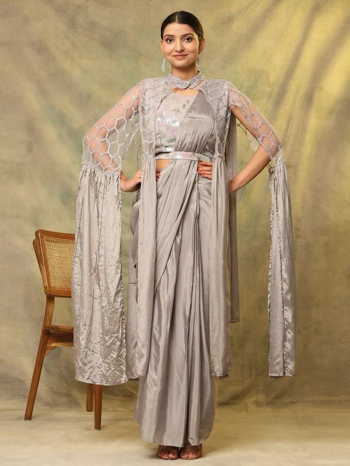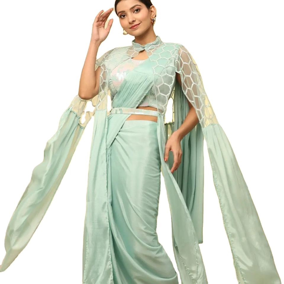 งานลําดับการปักผ้าไหม Chinon บริสุทธิ์ของนักออกแบบล่าสุดพร้อมสวมผ้าสารีโดย Fab Zone