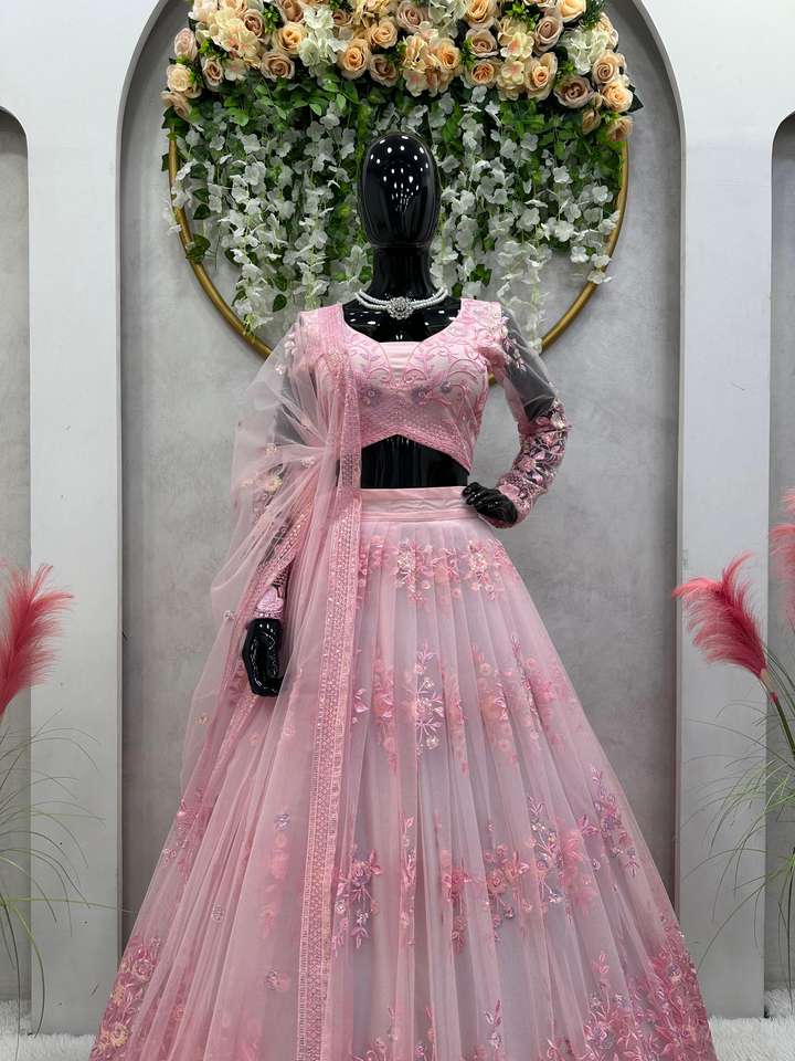 ด้ายตาข่ายเนื้อนิ่มจากนักออกแบบล่าสุดที่มีลำดับการทำงาน lehenga choli สำหรับเทศกาลปาร์ตี้โดย Fab Zone ที่มีคุณภาพสูง