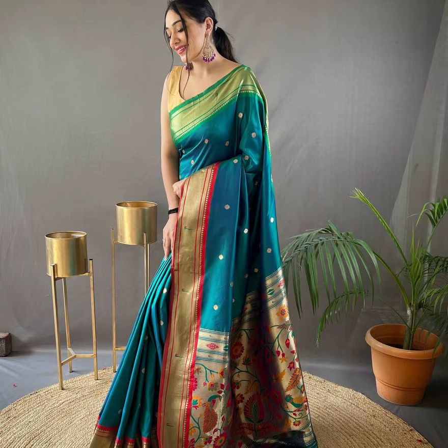 Latest Designer Traditional Style Pure Soft Cotton Paithani Silk Saree Comfort All-Day Wear for Parties with Jacquard Embroidery