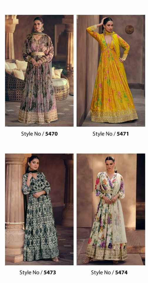 ชุดเดรสดีไซน์เนอร์แบบใหม่ล่าสุดพิมพ์ลาย georgette จริง kurti กางเกง & dupatta มีลำดับและฟอยล์รอยปักกระจกทำงานสำหรับขาย