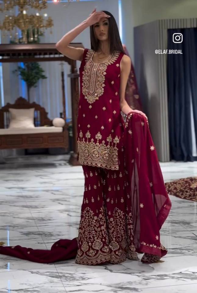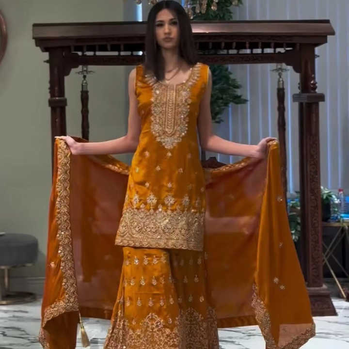 ผ้า Sharara-พร้อมด้านใน:Georgette จิ้งจอกกับงานปักภายใน: ผ้าฝ้ายไมโคร