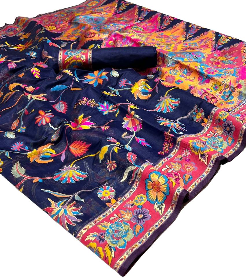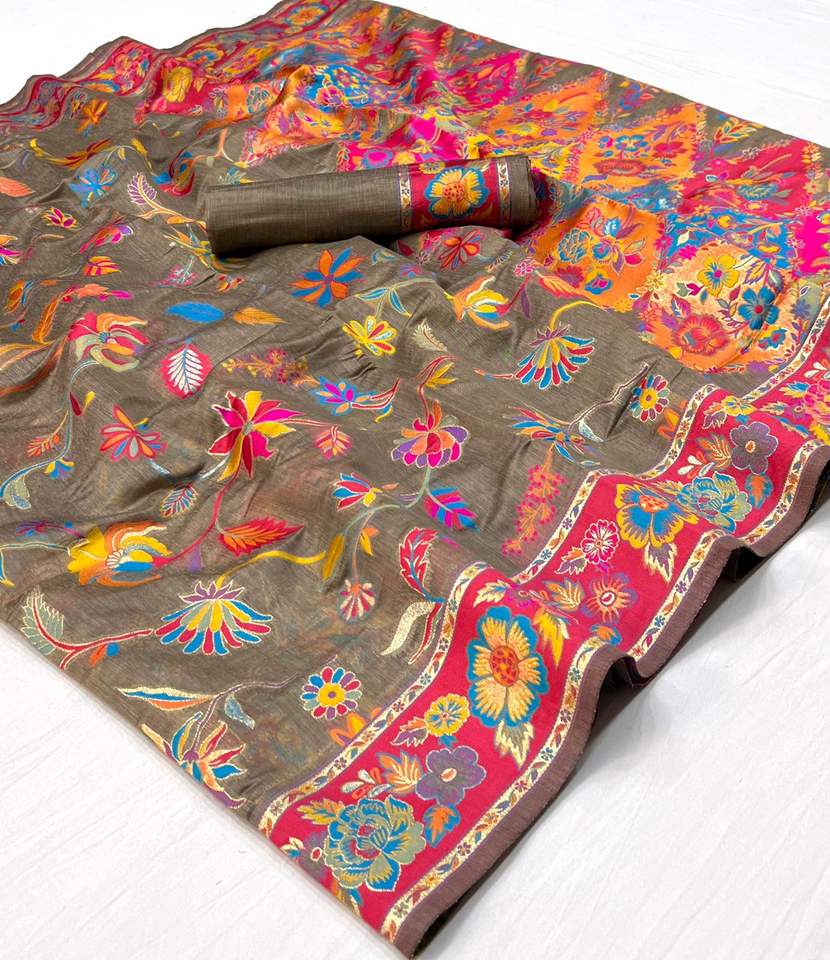 นักออกแบบล่าสุดผ้าไหมแคชเมียร์แท้แฟนซีพิมพ์งานสารี