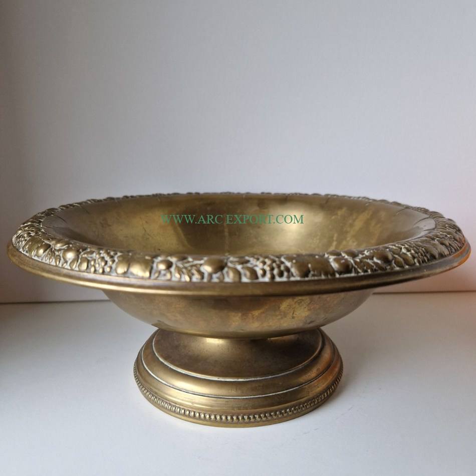 ชามเสิร์ฟอาหารและผลไม้ทำจากทองเหลืองโบราณทรงกลมอุปกรณ์ตกแต่งโต๊ะดีไซน์ล่าสุด