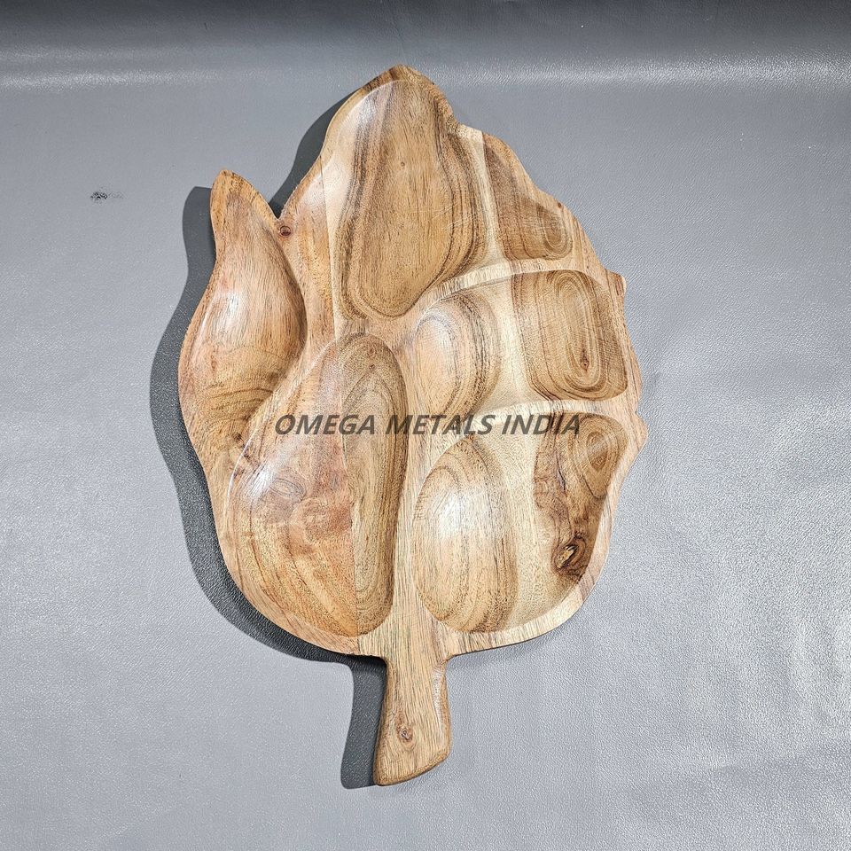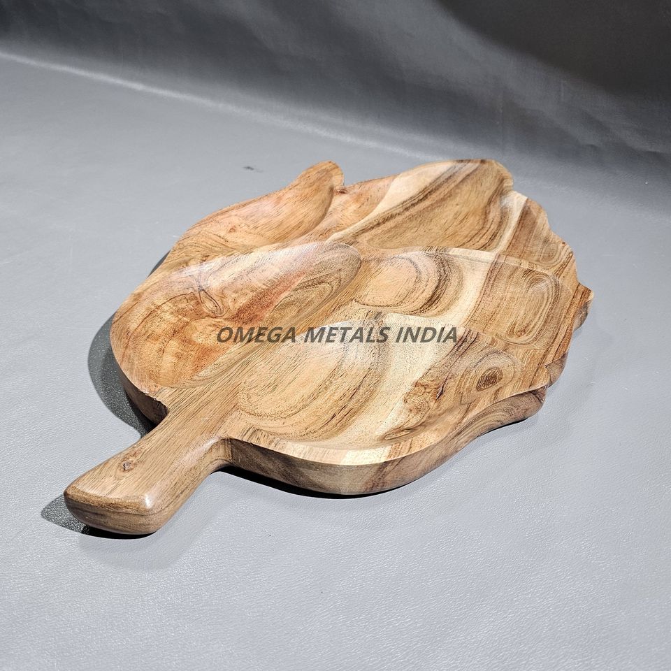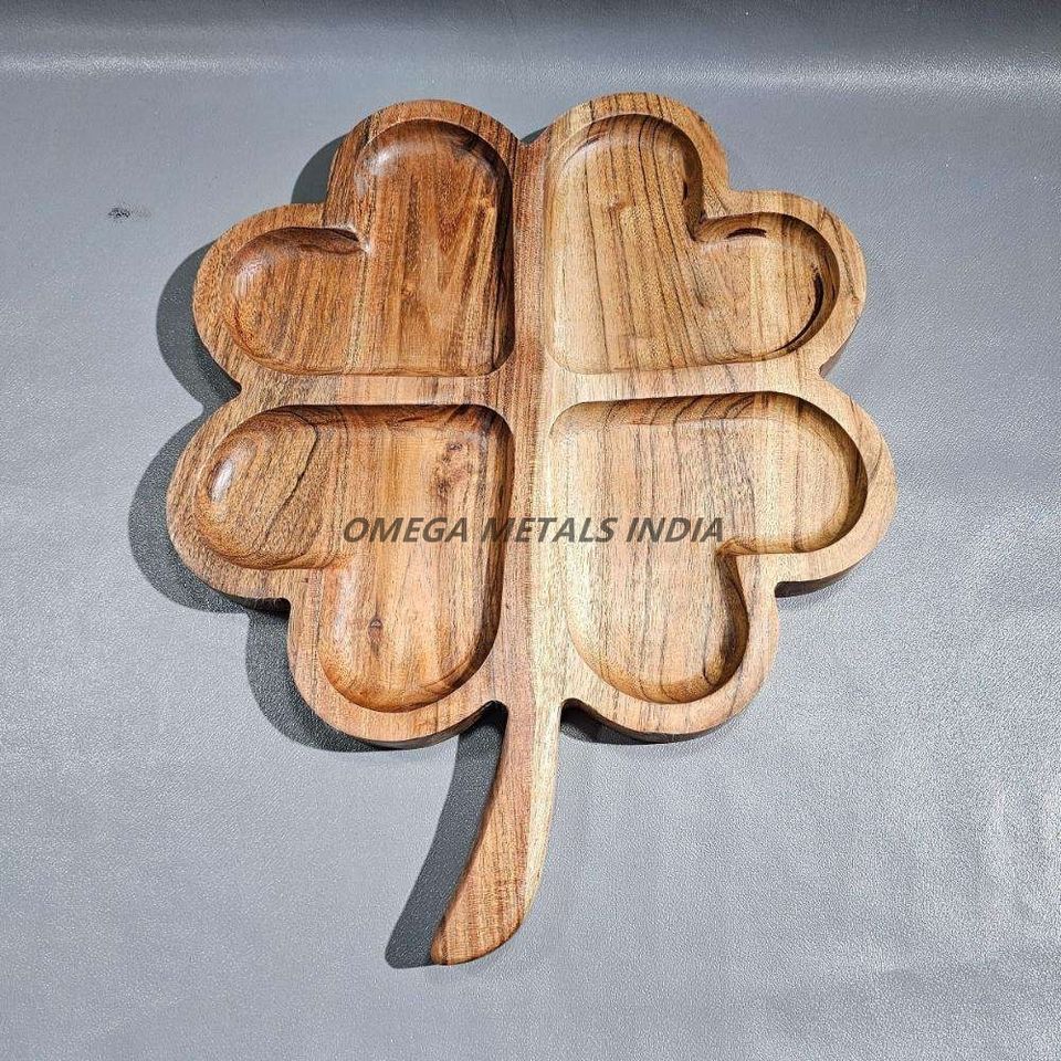 Handmade Acacia Wood Clover Shaped Serving Tray Latest Design with Natural Finish for Snacks Dry Fruits Decorative Display