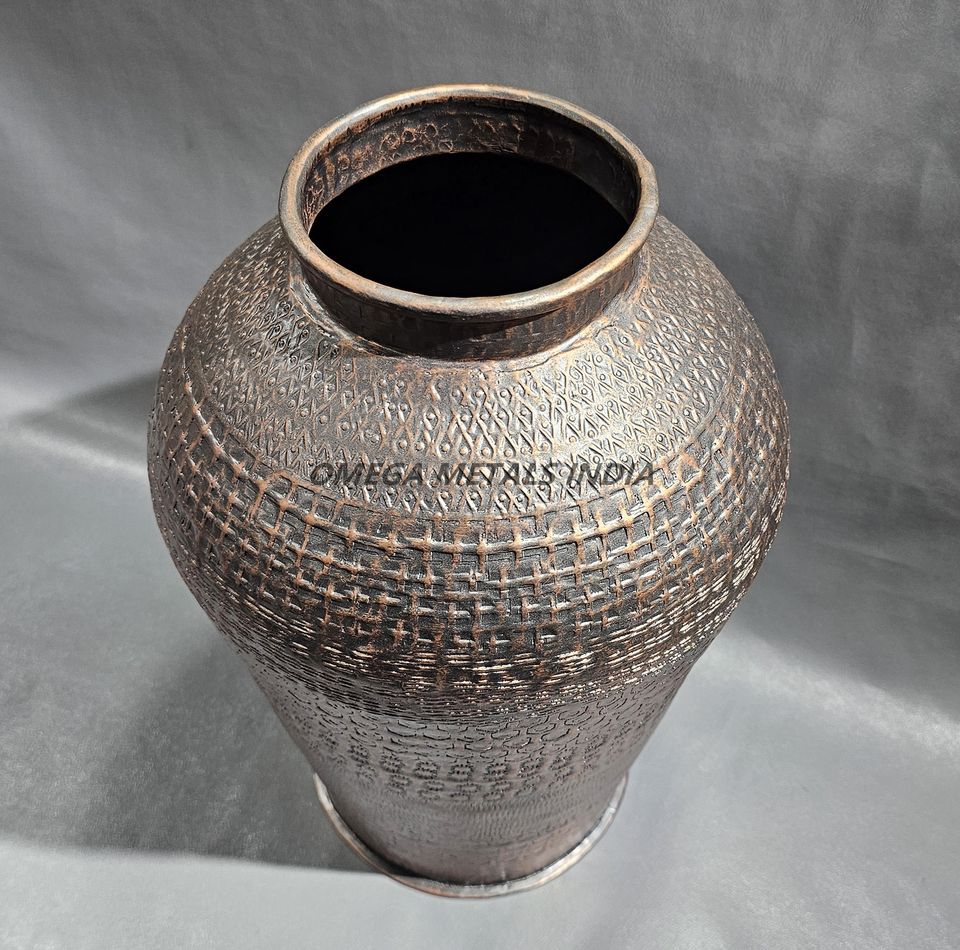 แจกันโลหะบรอนซ์เก่าที่มีพื้นผิวแกะสลักอย่างประณีตและรูปทรงสูงหรูหราสำหรับพื้นที่อยู่อาศัยที่ทันสมัยดีไซน์ล่าสุด