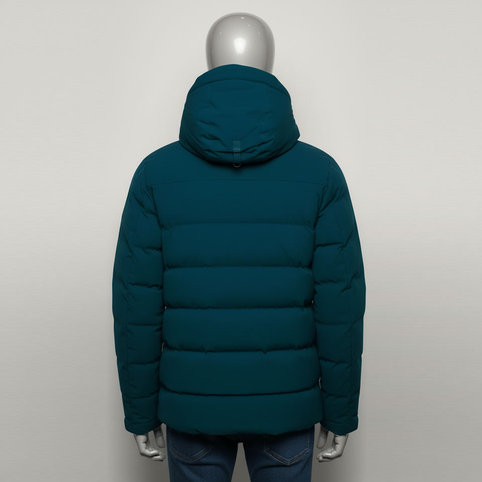 เสื้อแจ็คเก็ตพัฟเฟอร์ผู้ชายแบบมีฮู้ด ดีไซน์ล่าสุด คุณภาพสูง สำหรับฤดูหนาว ปกพับได้ กันน้ำ ปักลายด้านหน้า แบบบาง ใส่กลับด้านได้