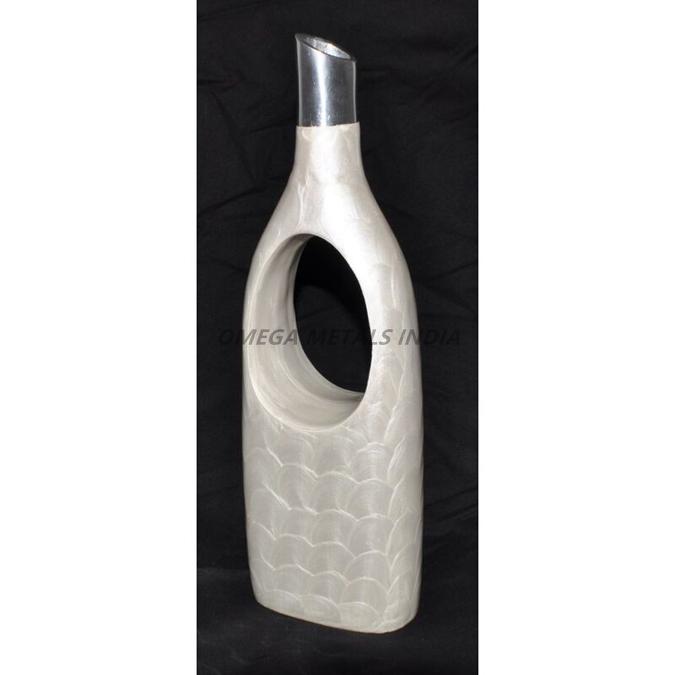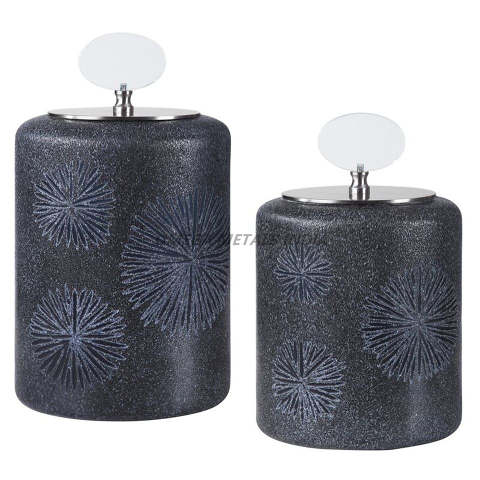 แจกันโลหะดีไซน์ล่าสุดตั้งอยู่ในสีเทาเข้มที่สวยงามด้วยรูปทรงกระบอกที่ทันสมัยและรูปแบบที่ซับซ้อนสำหรับตกแต่งบ้าน