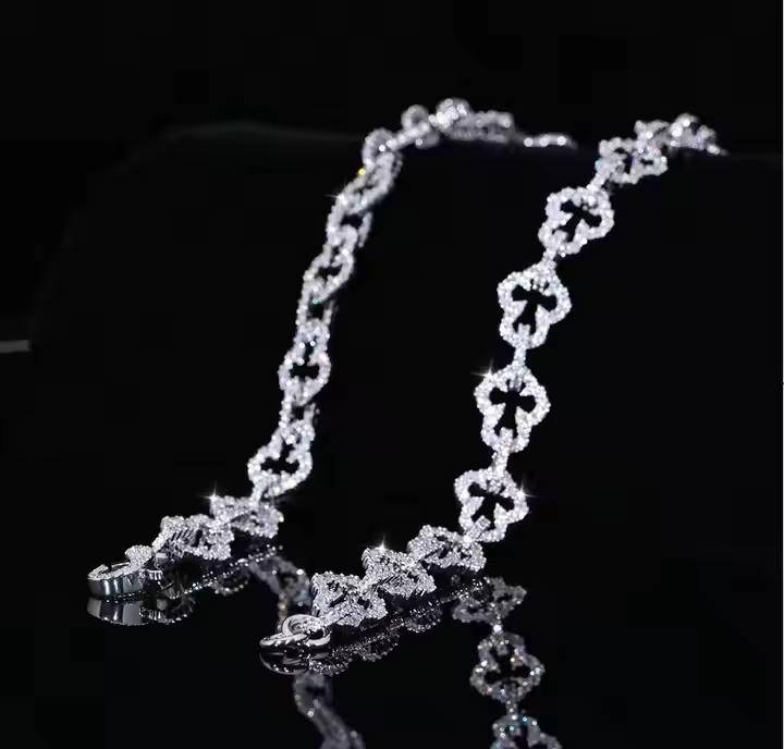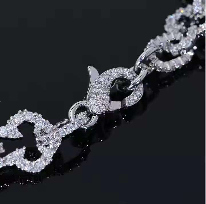 ห่วงโซ่เพชรแนวฮิปฮอปสไตล์คิวบาสำหรับผู้ชายเครื่องประดับสุดหรูห่วงโซ่เพชรแบบตัดกลม