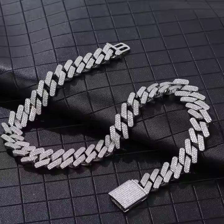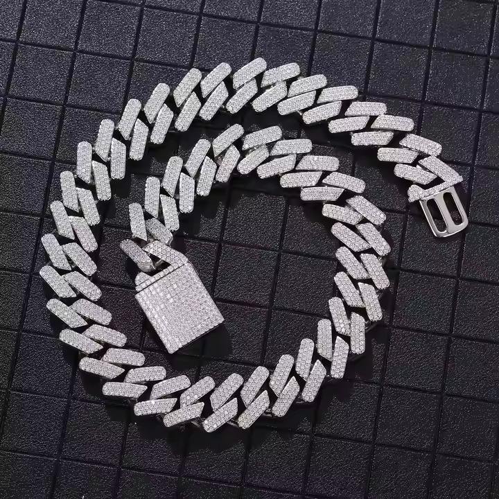 ห่วงโซ่เพชรแนวฮิปฮอปสไตล์คิวบาสำหรับผู้ชายเครื่องประดับสุดหรูห่วงโซ่เพชรแบบตัดกลม