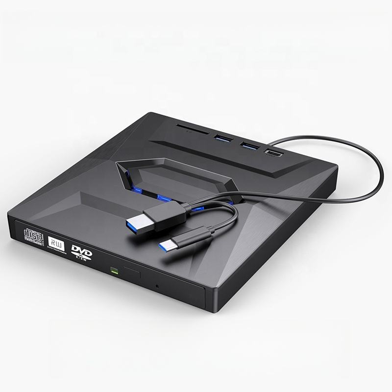 เครื่องเขียนดีวีดีแบบพกพา USB 3.0/TYPE C 7-in-1 พร้อมช่องอ่านการ์ด SD/TF และช่องเสียบฮับ และช่องอ่านยูเอสบีแฟลชไดรฟ์ สำหรับแล็ปท็อป