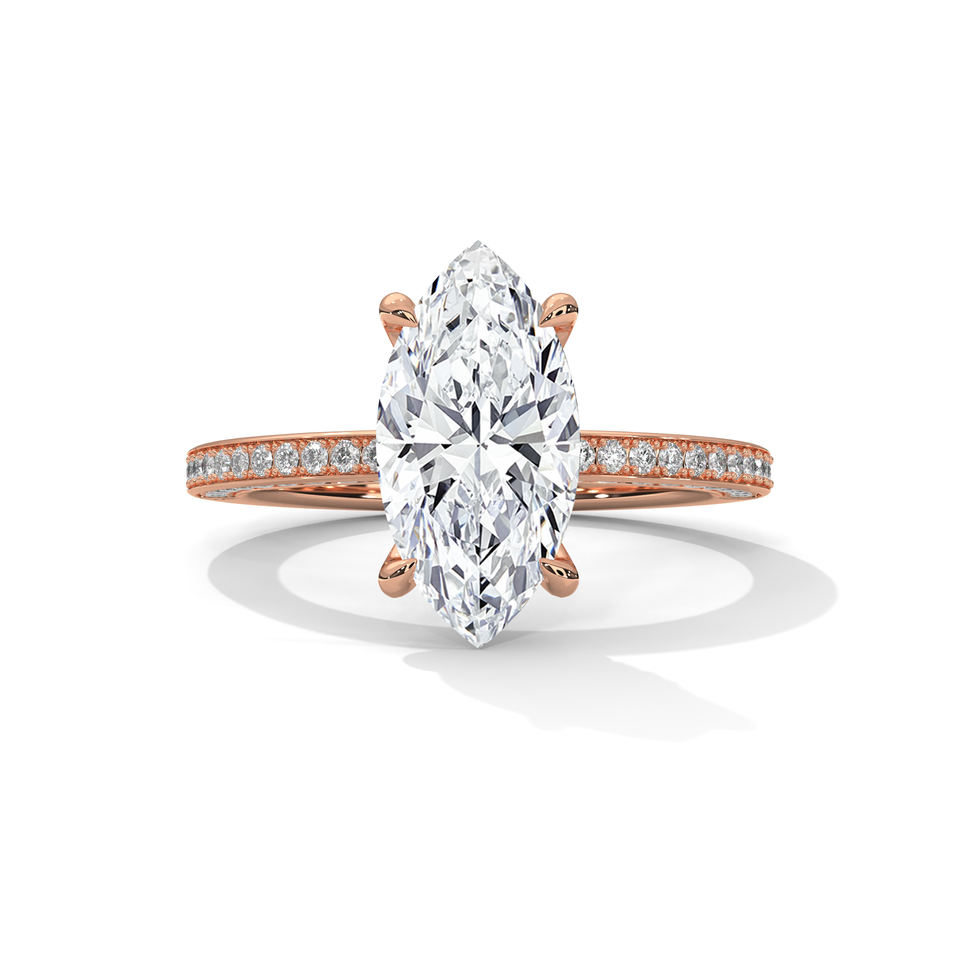 แหวนแต่งงาน/หมั้น สไตล์วินเทจ ดีไซน์หรูหราทันสมัย ทองคำขาว 10k, 14k ประดับเพชรทรงมาร์คีส์จากแล็บ พร้อมเพชรเม็ดเล็กๆ รอบวง