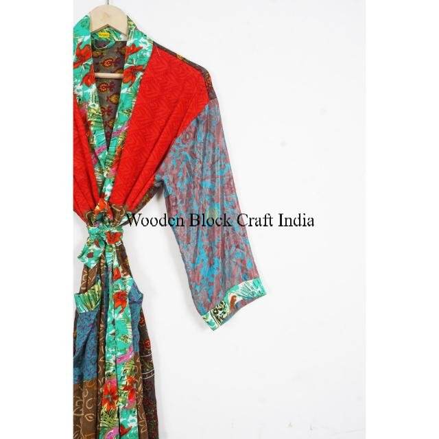 ชุดกิโมโนผ้าไหมหรูหราล่าสุด คอวี แขนยาว ปิดด้วยเชือกผูก มีกระเป๋า ลายดอกไม้ สำหรับผู้หญิง