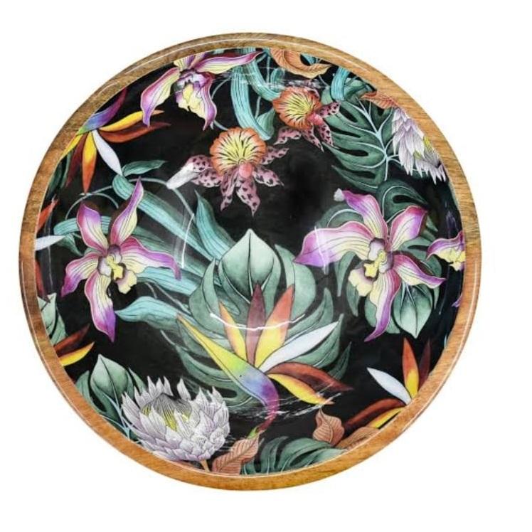 ชามไม้ลายพิมพ์เคลือบเงาแบบใหม่ล่าสุด ชามอาหาร ชามสำหรับร้านอาหาร อุปกรณ์จัดเลี้ยง ของใช้ในครัวเรือน ชามเสิร์ฟสลัด
