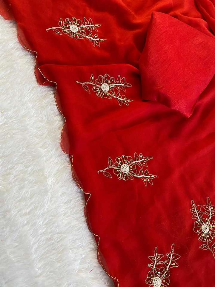 ผ้าส่าหรีผ้าจอร์เจียแท้นิ่มดีไซเนอร์ใหม่ล่าสุดพร้อมด้วยงานคัตต์น่ารักน่ารักแบบอินเดีย