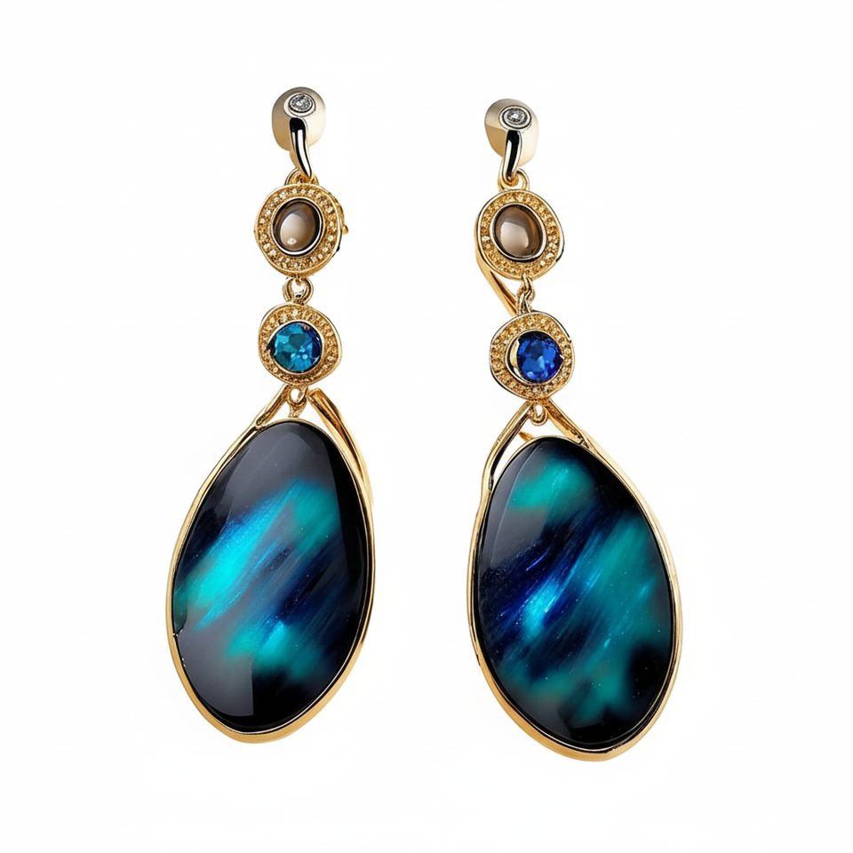 ต่างหูห้อยสไตล์ลาบราดอไรต์สุดพิเศษสำหรับผู้หญิงและเด็กผู้หญิงเครื่องประดับแฟชั่นชุบทองทันสมัย