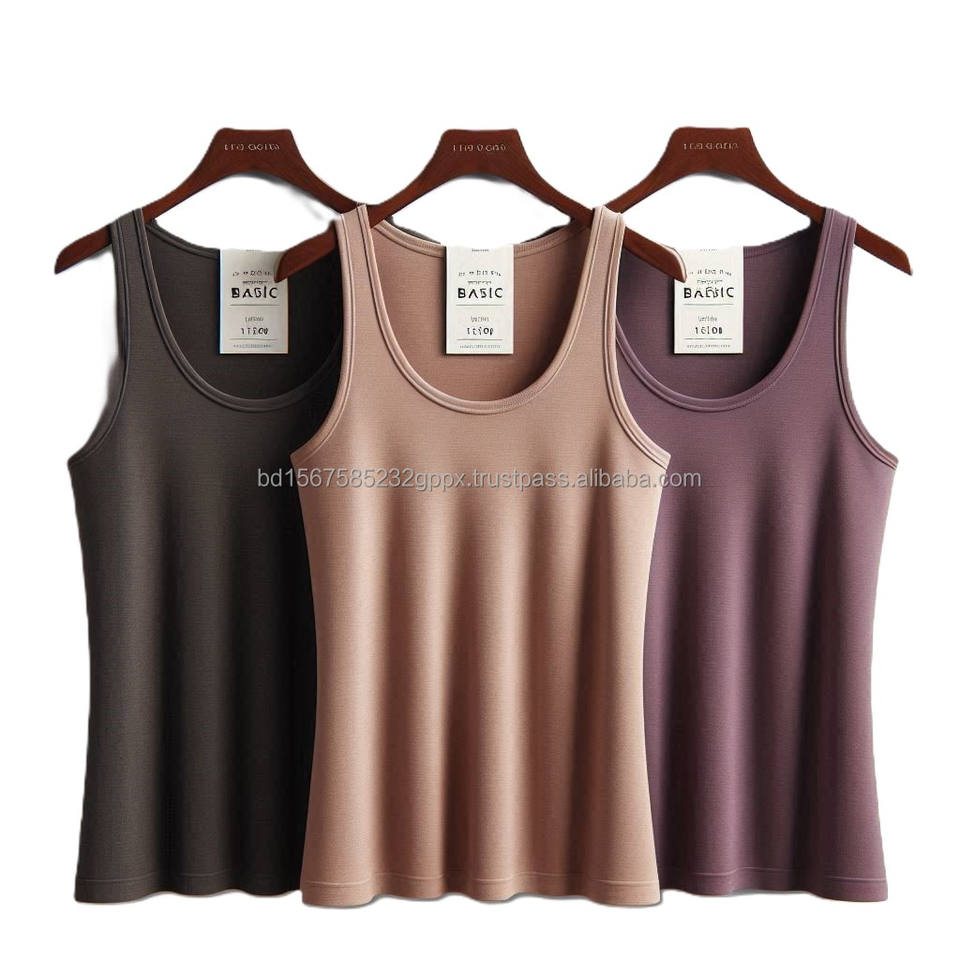 เสื้อกล้ามคอกลมแขนกุดสำหรับผู้หญิงเสื้อ100% ผ้าฝ้ายถักมีคุณภาพระดับพรีเมียมเสื้อกล้ามยาวแบบผูกคอ