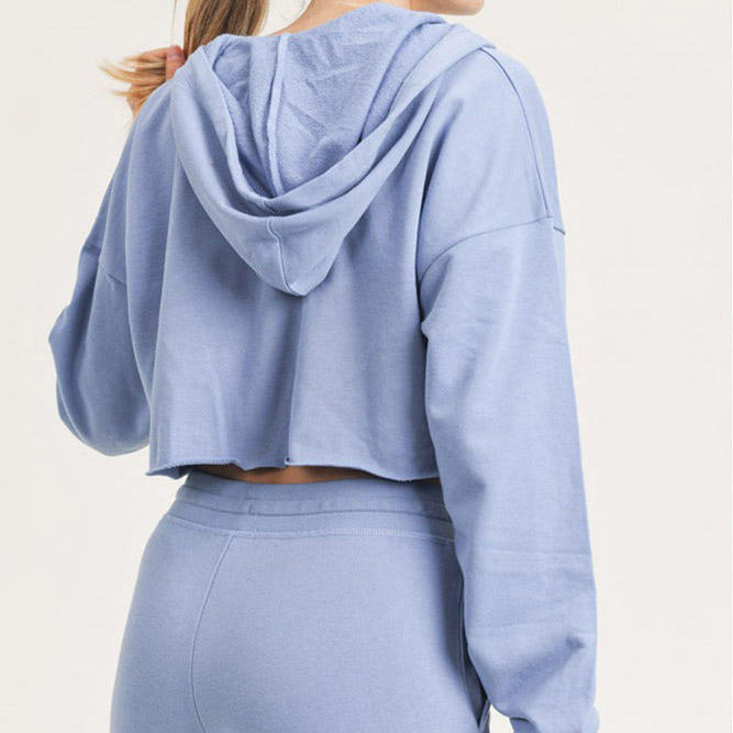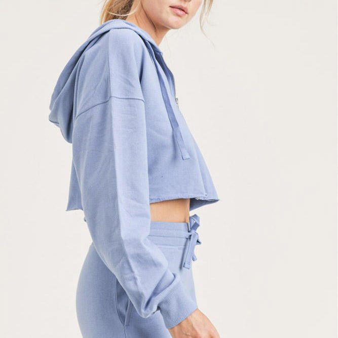 เสื้อฮู้ดกันหนาวแบบมีฮู้ดของผู้หญิงเสื้อครอปซิปรูดพิมพ์โลโก้แบบกำหนดเอง