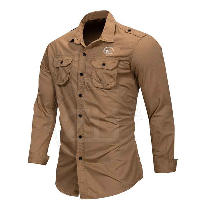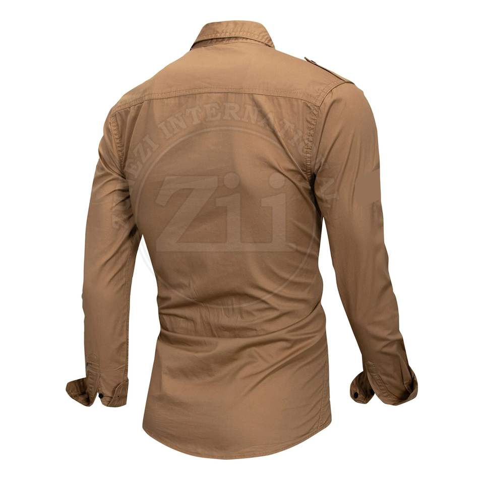 ล่าสุดแฟชั่นผู้ชายเสื้อธรรมดาสีกากีขายส่ง OEM ที่ขายดีที่สุดลําลองแขนยาวคุณภาพส่งออก Customwith ออกแบบกระเป๋าหน้าอก