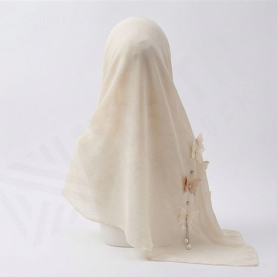 ผ้าพันคอผีเสื้อแบบมีระบายสีสันสดใสแฟชั่นล่าสุดสำหรับผู้หญิง ผ้าคลุมศีรษะมุสลิม ฮิญาบ เนื้อผ้านุ่ม พรีเมียม หรูหรา ทันสมัย