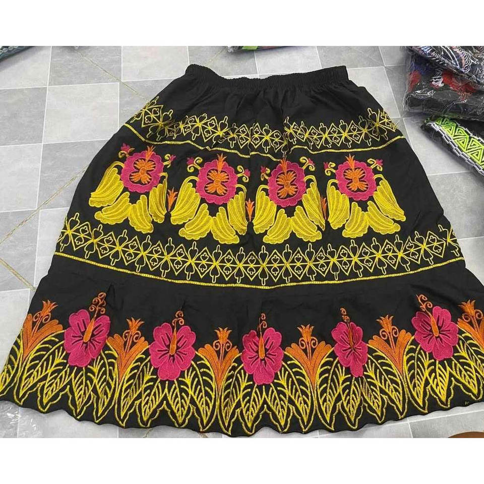 กระโปรงลำลองแฟชั่นล่าสุดสำหรับผู้หญิง สไตล์ชุดฮาวาย ไมโครนีเซีย ทำจากโพลีเอสเตอร์ ปักลายดอกไม้ ดีไซน์ใหม่ไม่ซ้ำใคร